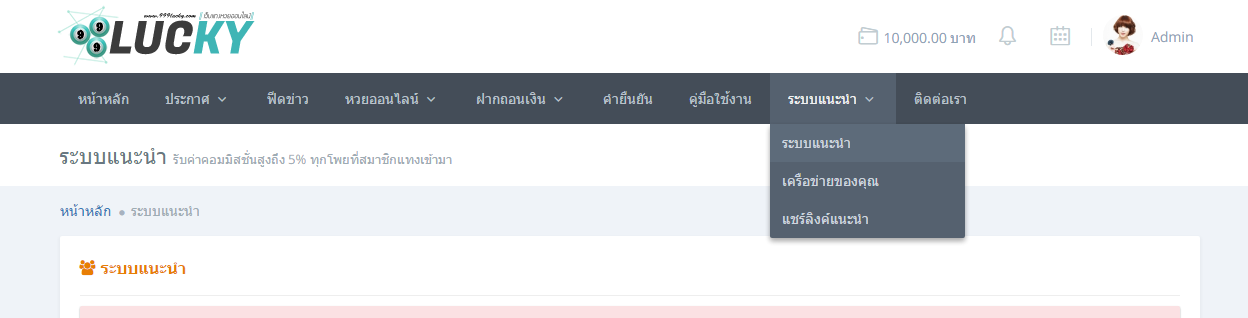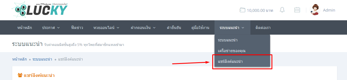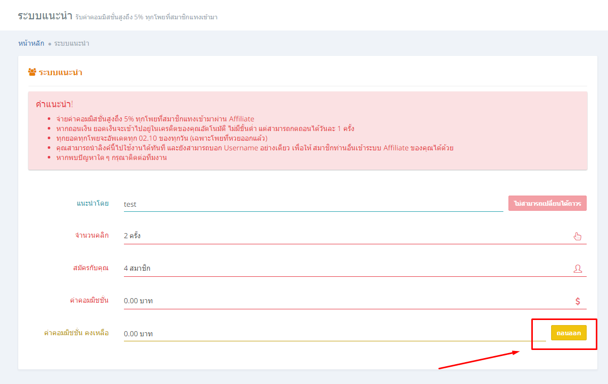 วิธีกดรับค่าคอมมิชชั่นจากระบบแนะนำ